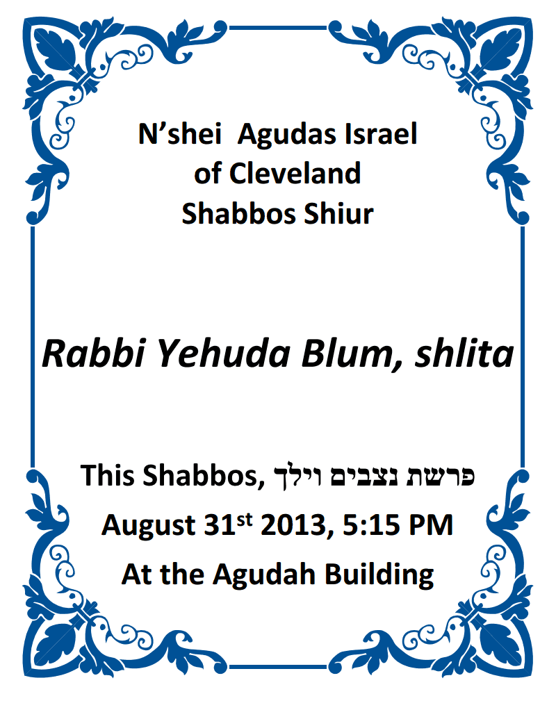 N’Shei Agudas Yisroel Parshas Nitzavim-V’Yelech WIth Rabbi Yehuda Blum, shlita
