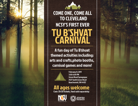 This Sunday, February 8, 2015, Cleveland NCSY will host a Tu B’shvat Carnival at Green Road Synagogue from 3:00-6:00 pm. The carnival will include games, arts and crafts and prizes! This community event is open to all ages and rolls of 20 game tickets will be sold for five dollars with food sold separately.