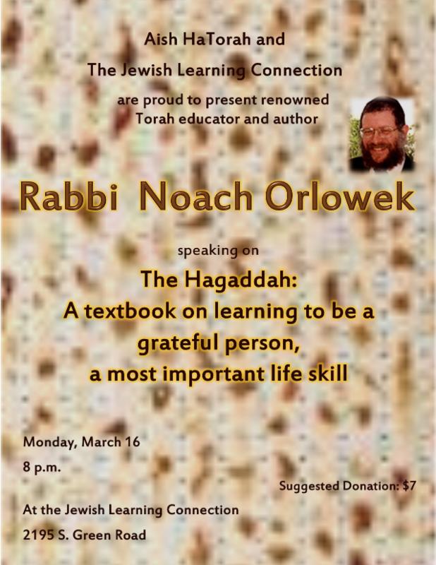 Rabbi Noach Orlowek – The Hagaddah: A textbook on learning to be a grateful person