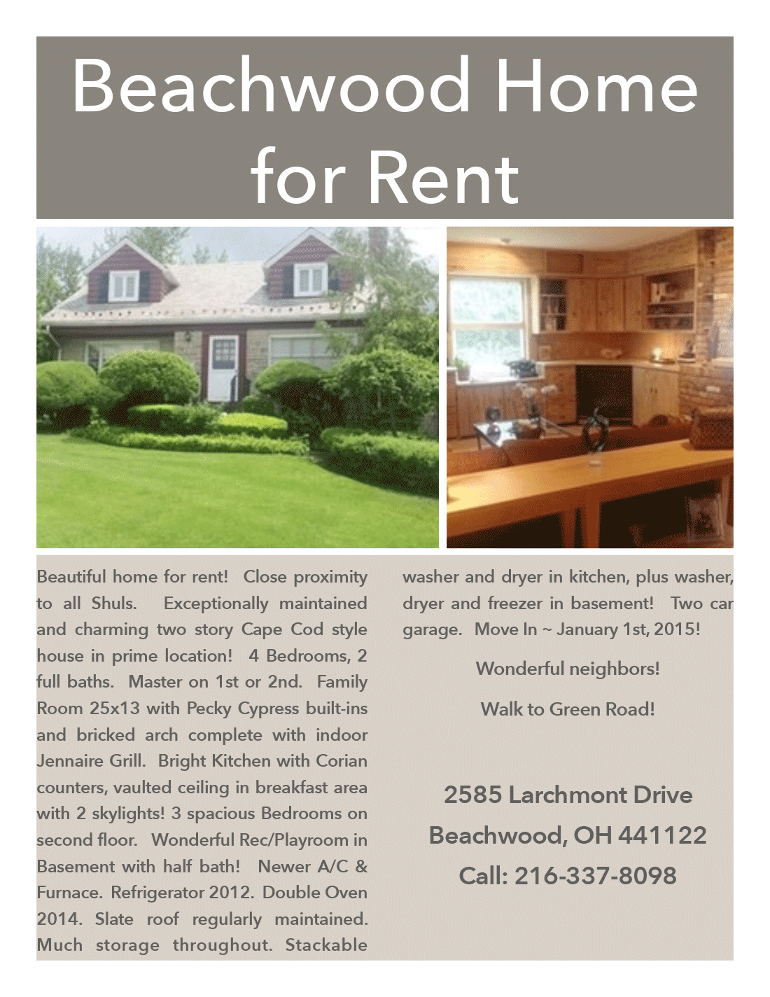 Beachwood Home for Rent – 2585 Larchmont Drive