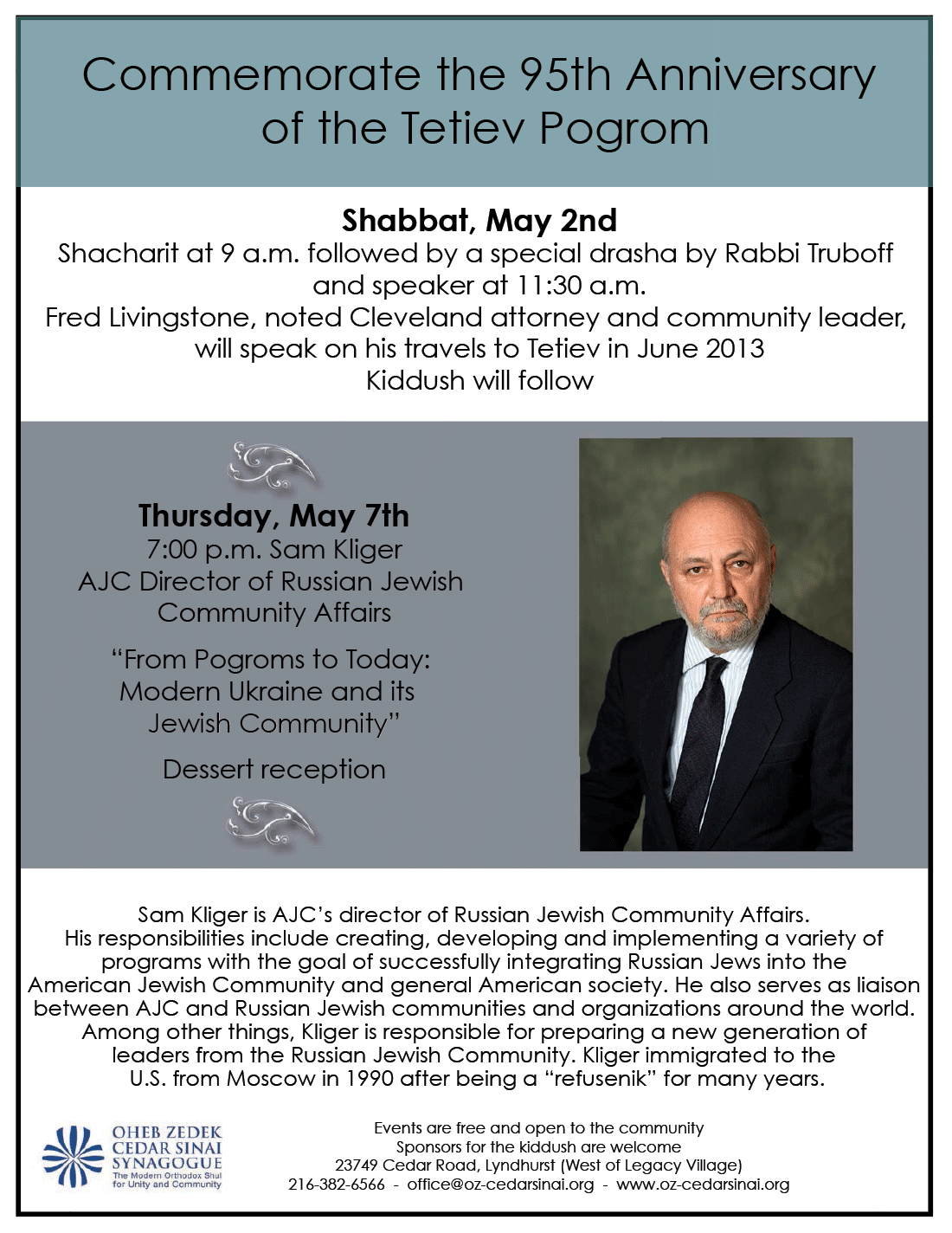 95th Anniversary of the Tetiev Pogrom – Oheb Zedek Cedar Sinai Synagogue