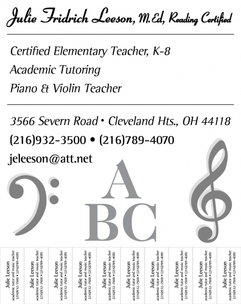 Julie Fridrich Leeson, M.Ed, Reading Certified – Piano & Violin Teacher April 28, 2015 Leave a Comment