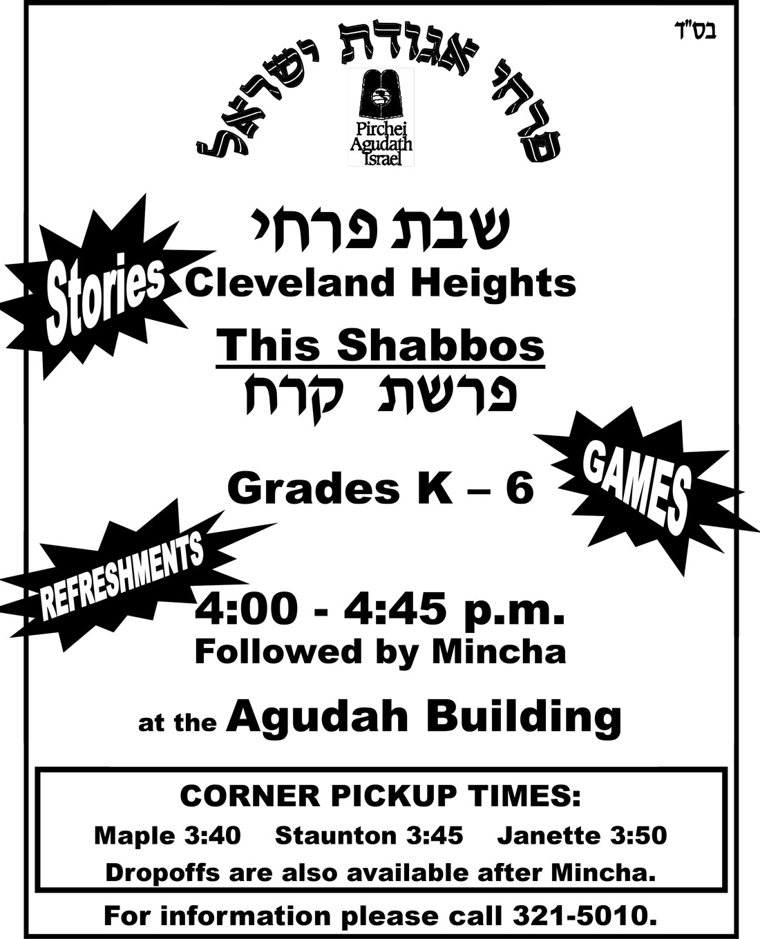 Agudath Israel – Pirchei in Cleveland Heights – Parshas Korach
