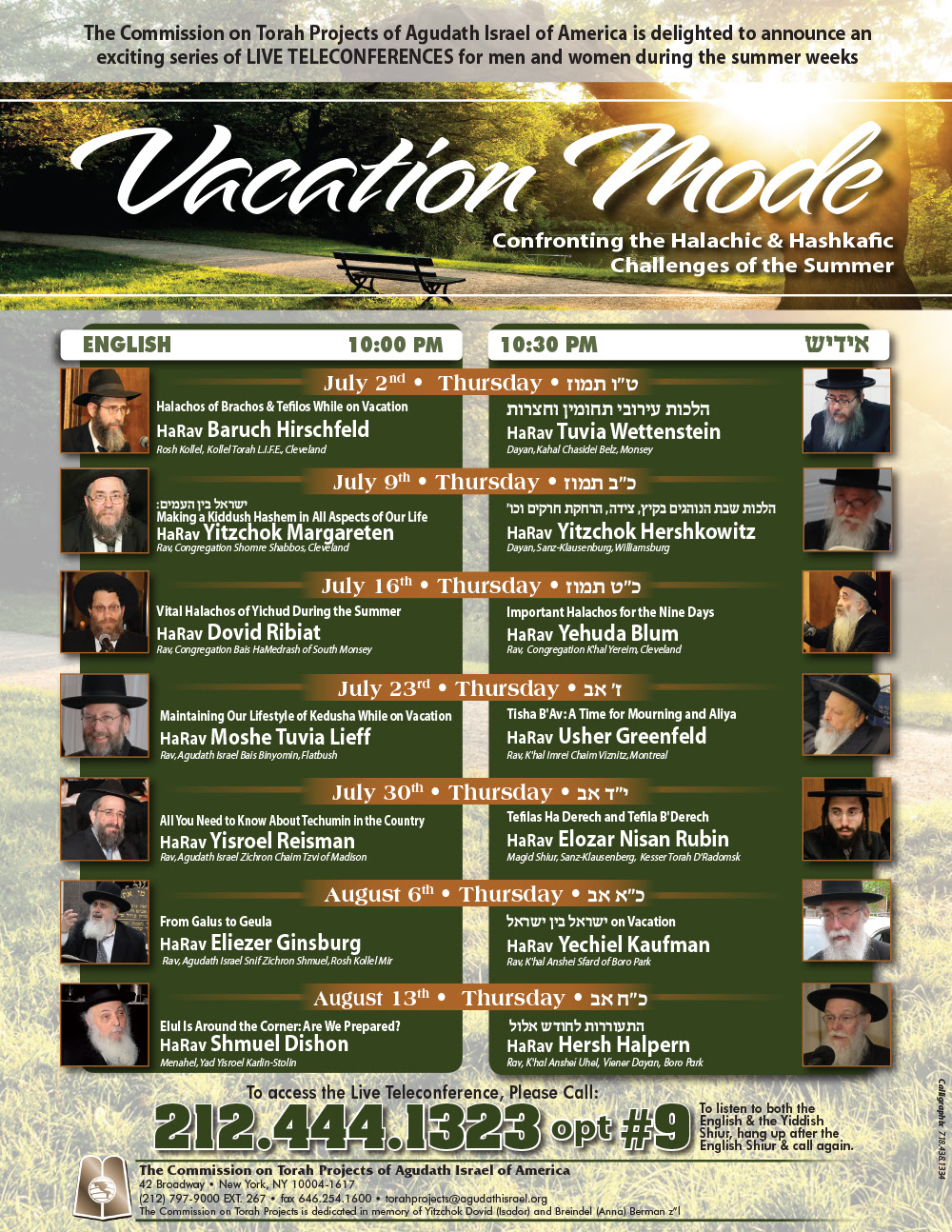 Summer Conference Calls Beginning this Thursday Evening July 14, 2015 2 Comments (This year featuring two of our Cleveland Rabbonim)