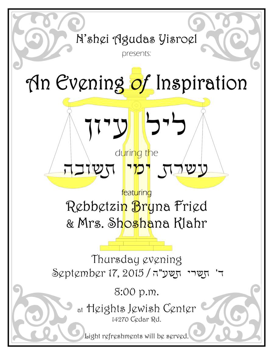 N’shei Agudas Yisroel Presents and Evening of Inspiration During the 10 Days of Teshuvah August 23, 2015 Leave a Comment