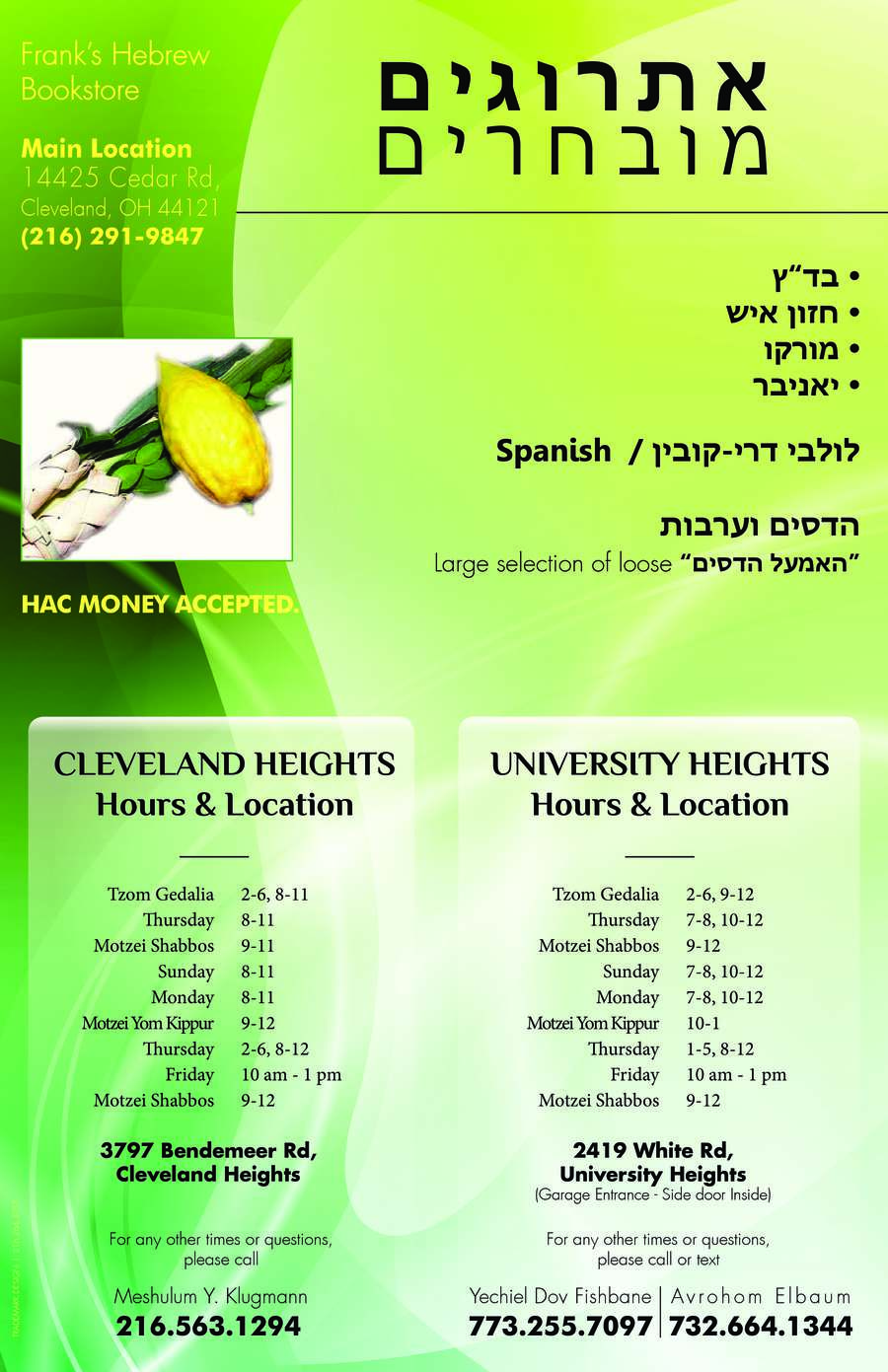 Frank’s Hebrew Bookstore – Esrogim Muvcharim