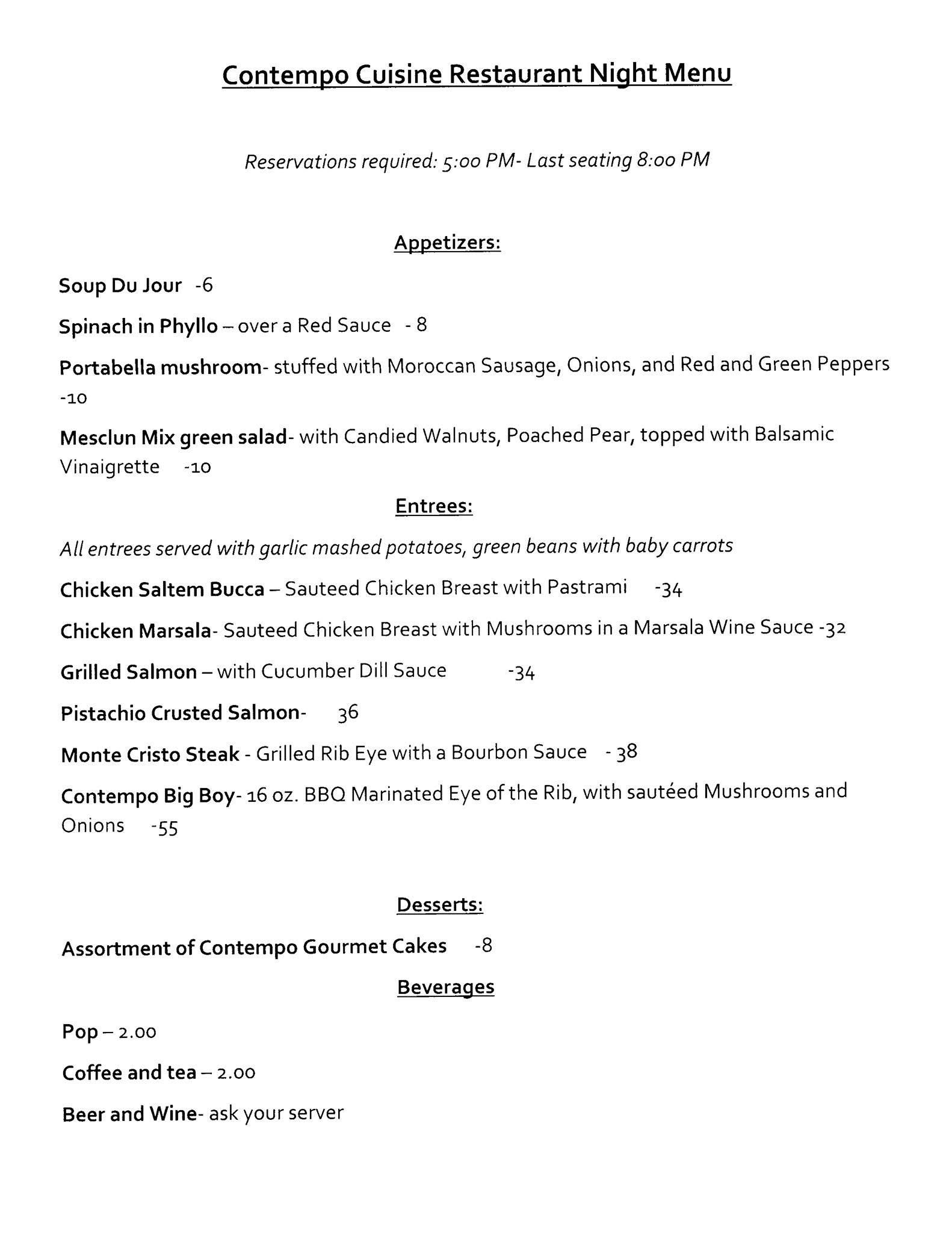 Contempo Cuisine Restaurant Night Menu September 17, 2015 Leave a Comment Contempo Cuisine Restaurant Nights Sunday, September 20th and Monday September 21st. Call 216-397-3520 for reservations.