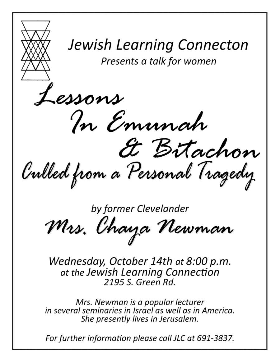 JLC Presents Lessons in Emunah & Bitachon with Mrs Chaya Newman