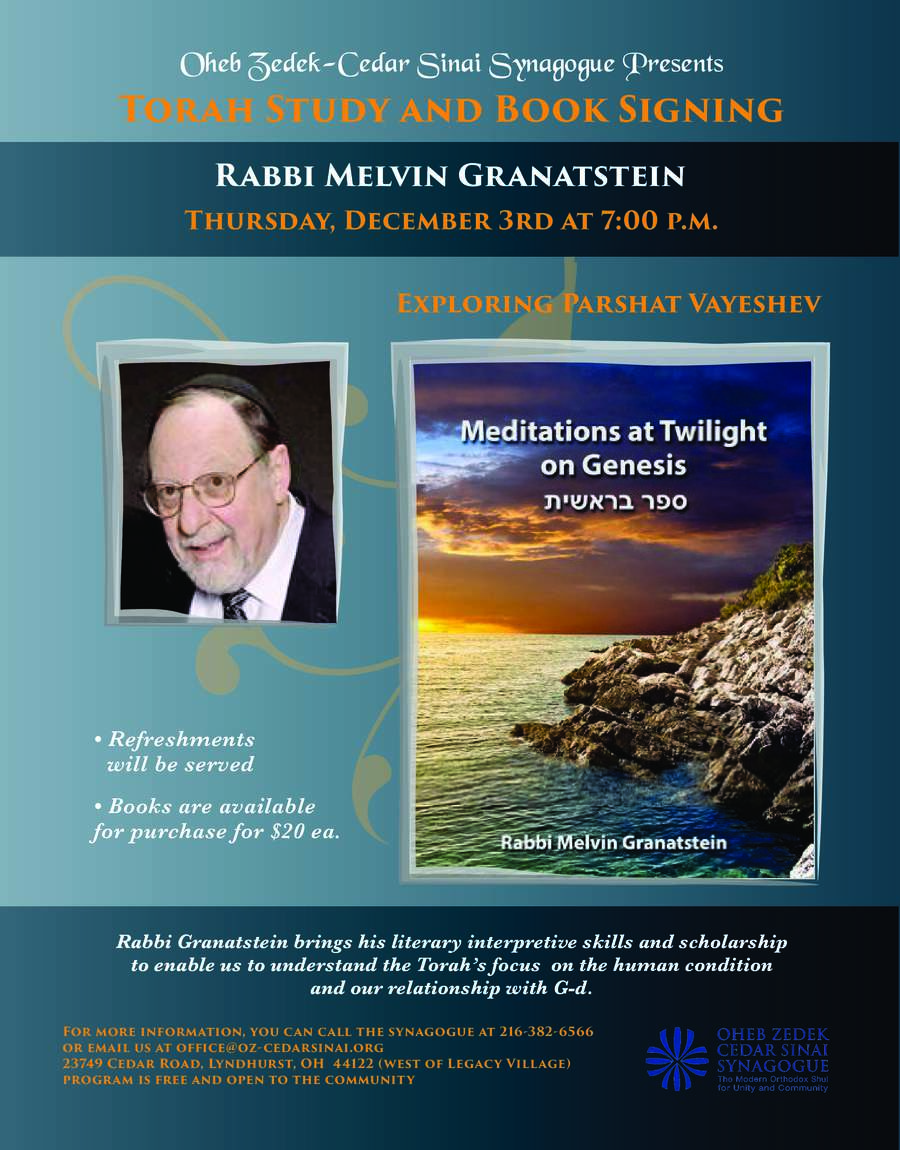Torah Study and Book Signing – Rabbi Melvin Granatstein – Meditations at Twilight on Genesis