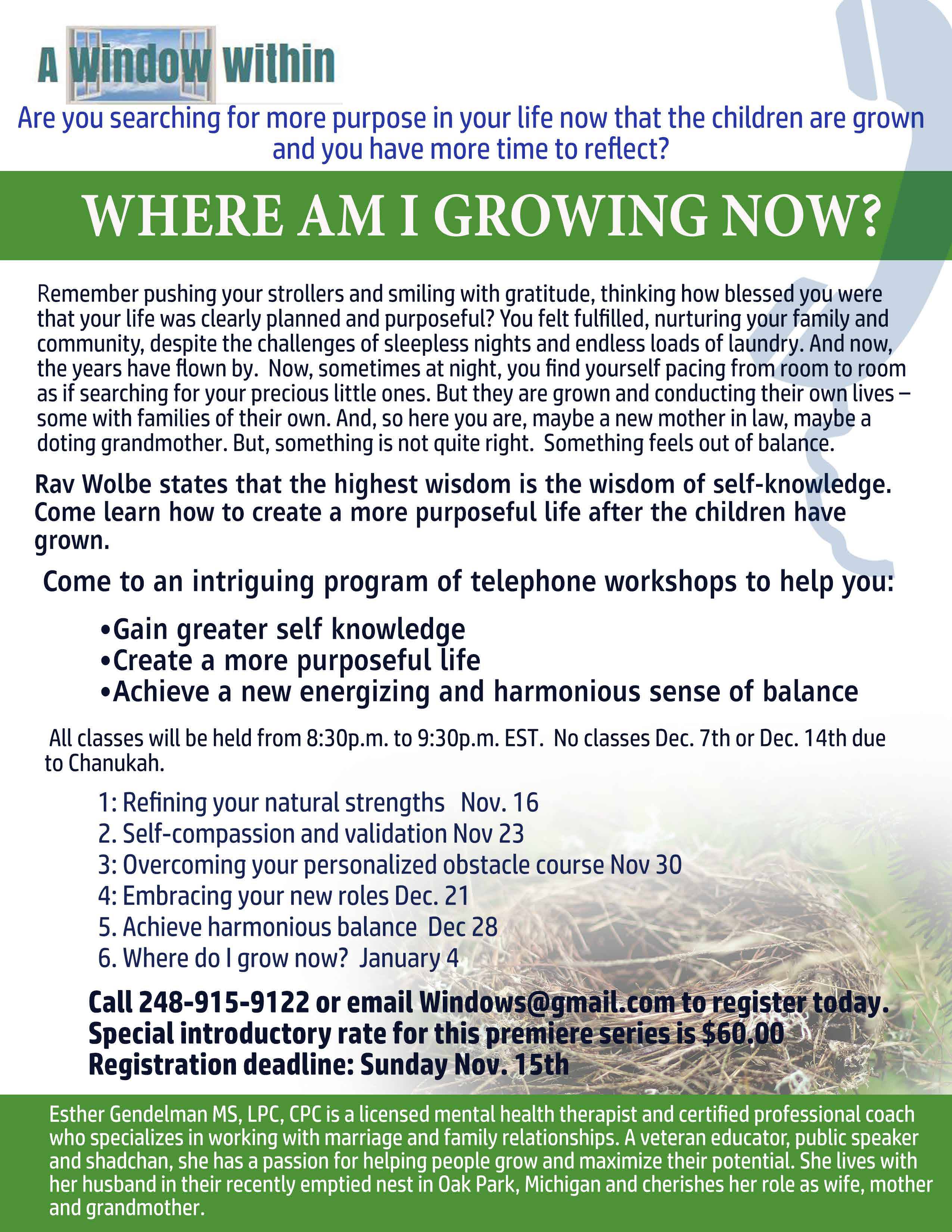 TLC (To Live with Choice) is a Torah based program of recovery for women dealing with compulsive eating and food addiction. Join us to learn the secrets of recovery and gain “chizuk” by learning the 13 Steps taught by Rebbetzin Moskowitz (Rabbi Ezriel Tauber’s daughter). Meetings are held every Tuesday night 7:45pm. We will be starting at 7:45 pm instead of 8:00pm from now on. The meeting will still be for 45 minutes so 7:45pm – 8:30pm. Kaiser Permanente HealthSpan – Cleveland Heights Medical Center, 10 Severance Circle, First Floor ENT section, Conference C. For more information please call Yehudis at (216) 315-0666. To find out more information and to hear inspiring lectures from Rebbetzin Moskowitz call the TLC HOTLINE (845) 414-0131.
