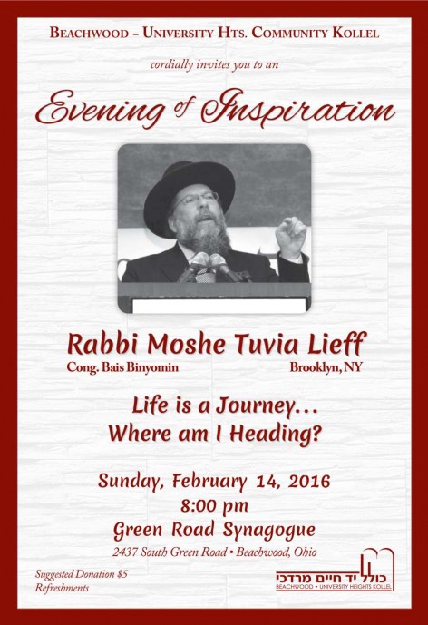 To be added to the Kollel’s email list and to receive the ‘Oneg Shabbos’ weekly publication by email, send an email to info@BeachwoodKollel.com with the subject Subscribe.