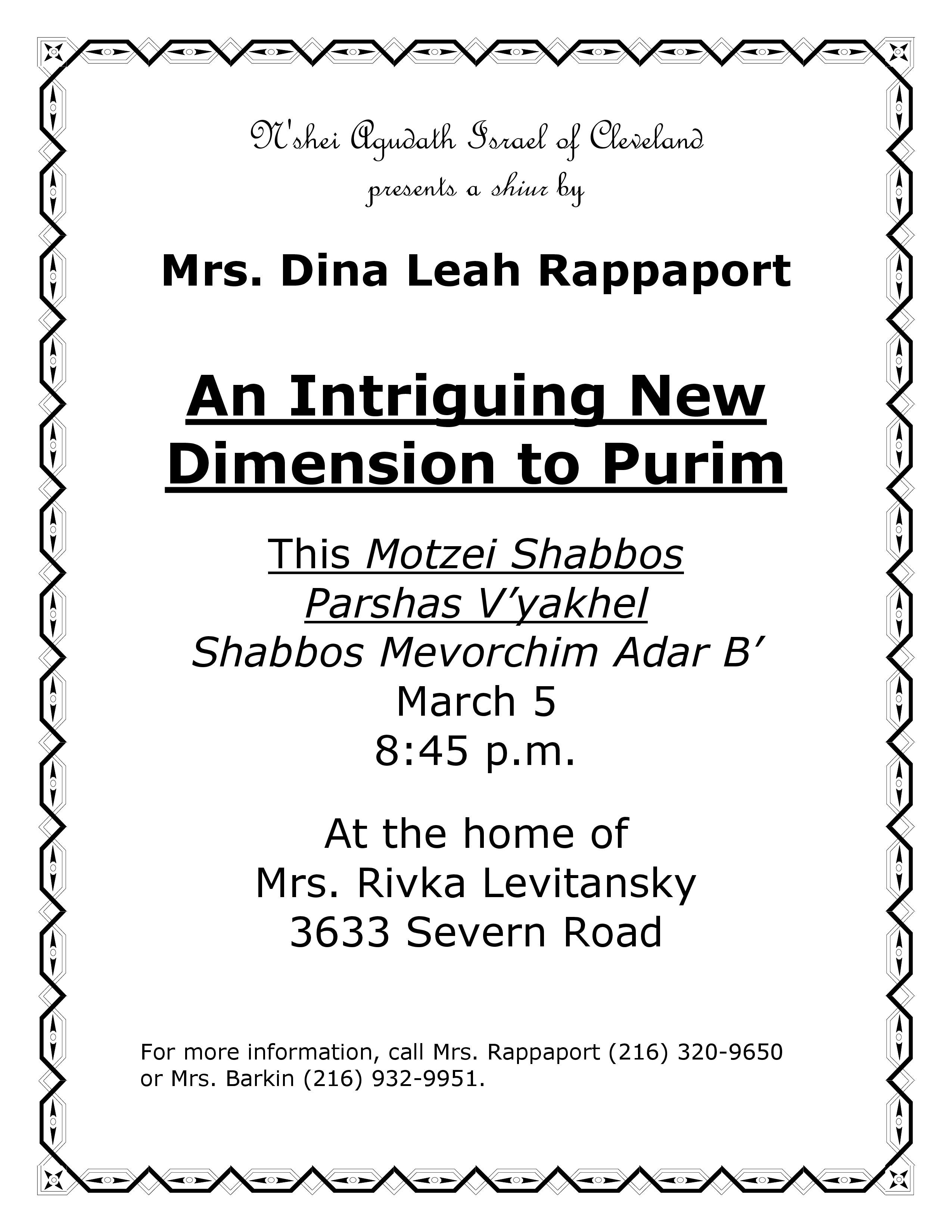 An Intriguing New Dimension to Purim – Mrs Dina Leah Rappaport
