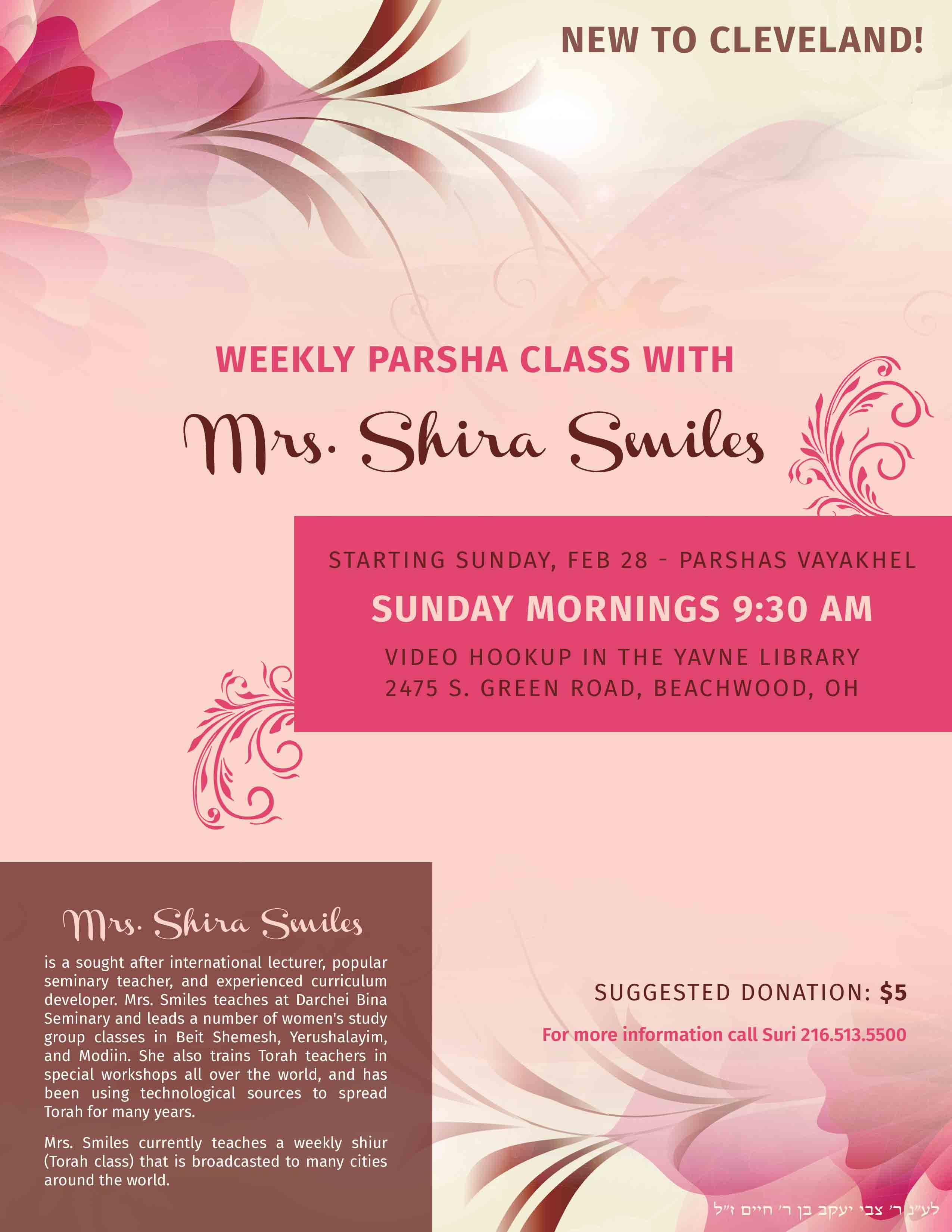 Weekly Parsha Class With Mrs. Shira Smiles