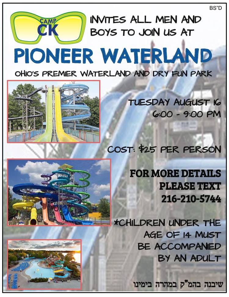 CAMP CK Invites All Men & Boys to Join Us at PIONEER WATERLAND August 16th