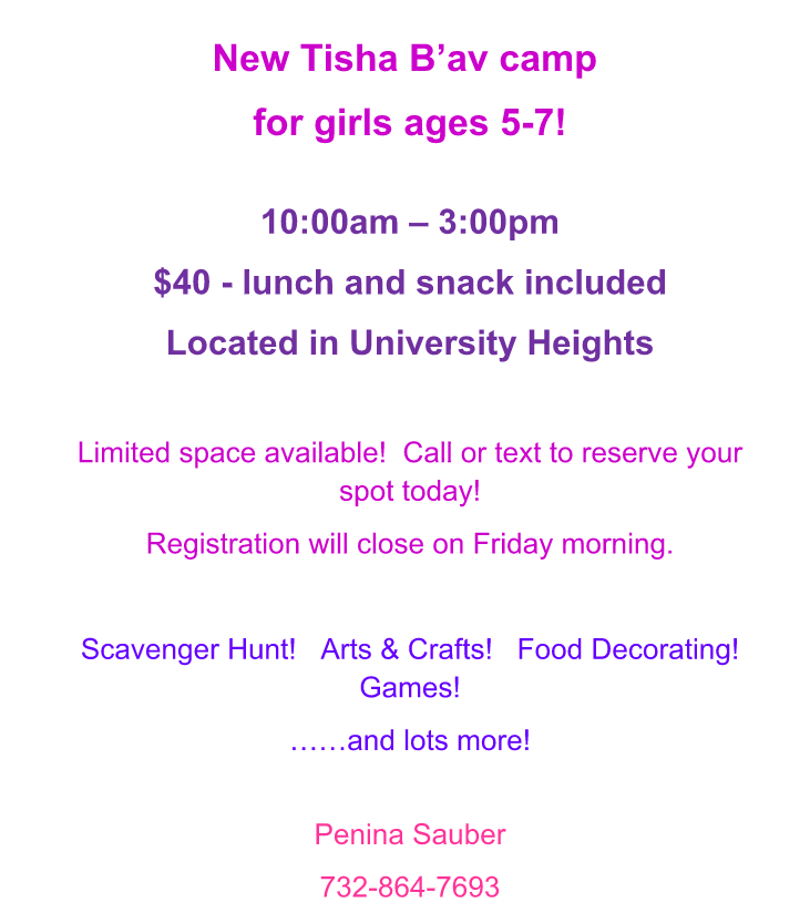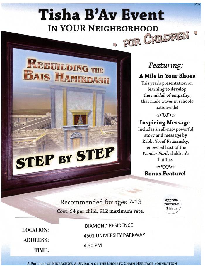 Special Items Just for the 9 Days Available to Order:Tisha B’Av Event In YOUR Neighborhood – FOR CHILDREN & ALSO IN CLEVELAND HEIGHTS