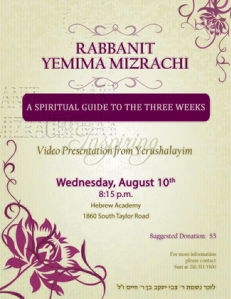 Rabbanit Yemima Mizrachi – A Spiritual Guide to the Three Weeks