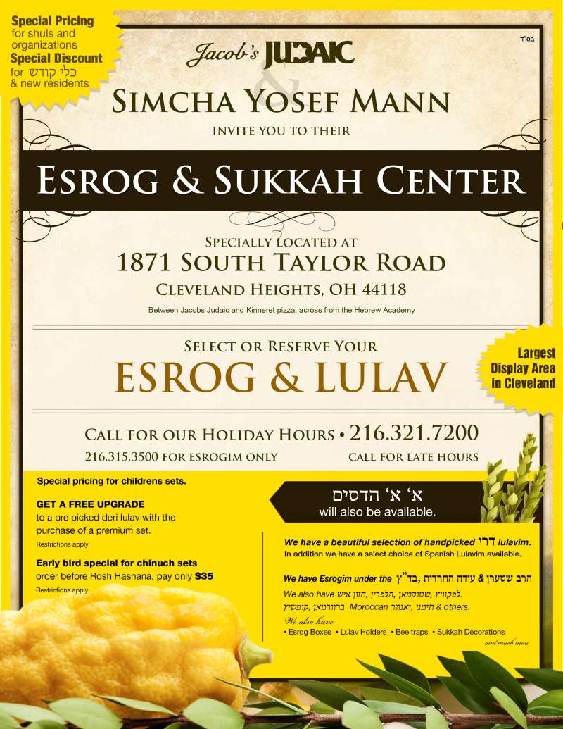 Jacob’s Judaic and Simcha Yosef Mann Invite You to the Esrog and Sukkah Center October 9, 2016 Leave a Comment