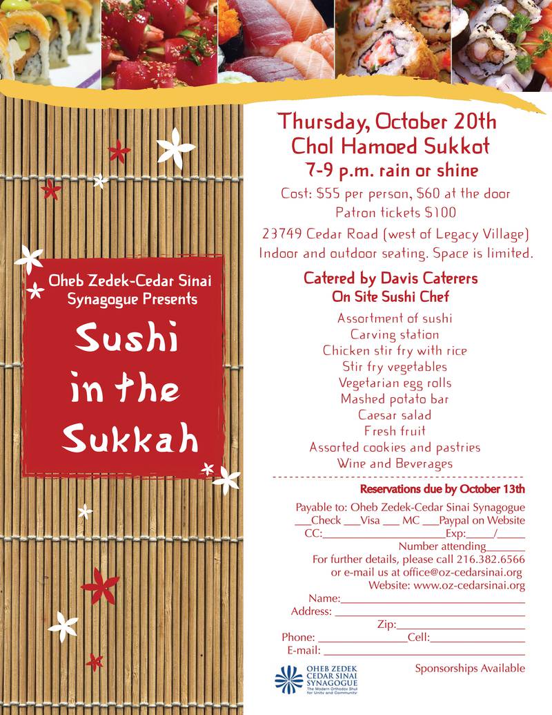 Sushi in the Sukkah at Oheb Zedek-Cedar Sinai Synagogue