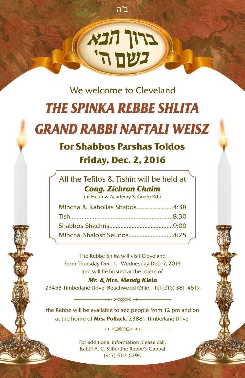 Bruchim Habaim to the Spinka Rebbe, Shlita