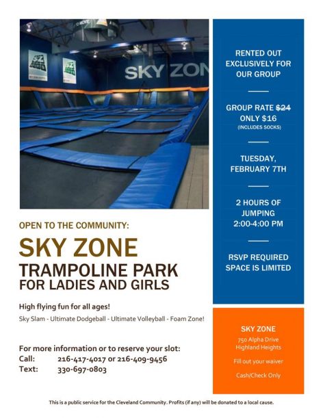 SkyZone – Special Discounted Session Exclusively for Community Women and Girls! February 5, 2017 Leave a Comment