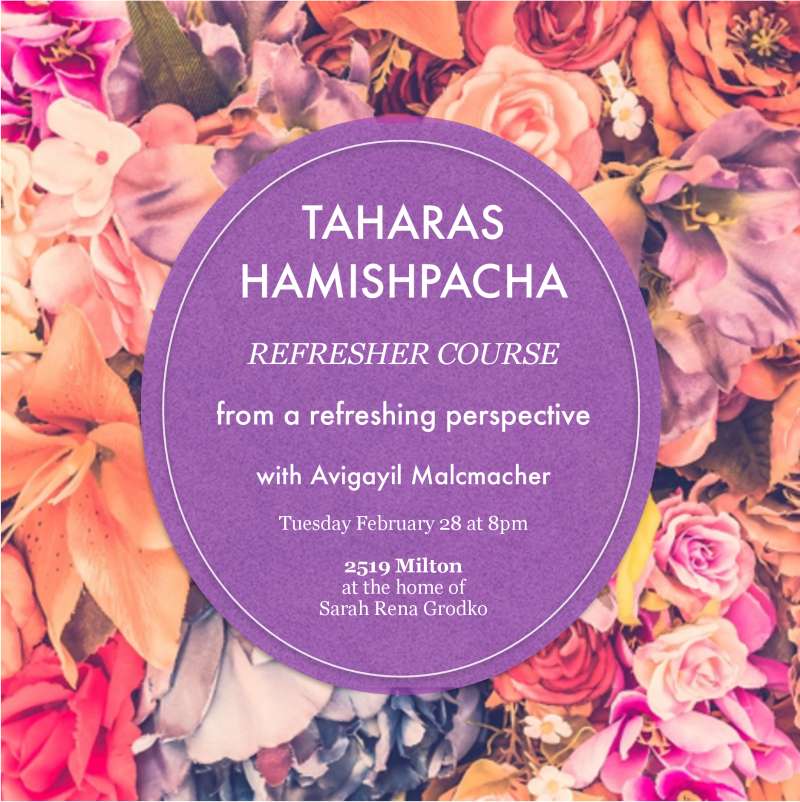 Taharas Hamishpacha Refresher Course with Avigayil Malcmacher, Feb. 28 February 23, 2017 Leave a Comment