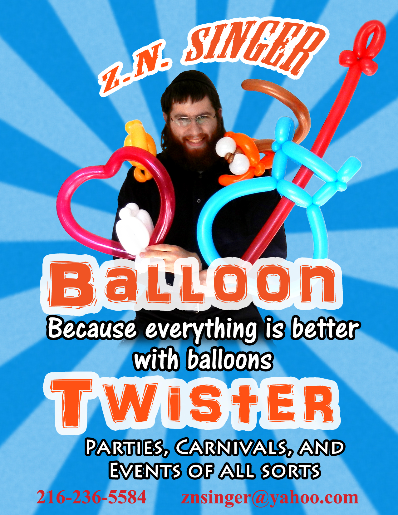 Book Now for Purim! Z.N. Singer – Balloon Twister! March 7, 2017 Leave a Comment Now taking Purim reservations.