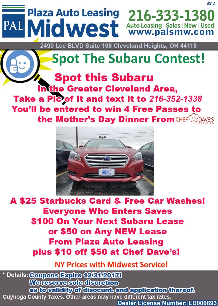 Spot the Subaru and Enter to Win Prizes at Plaza Auto Leasing Midwest!