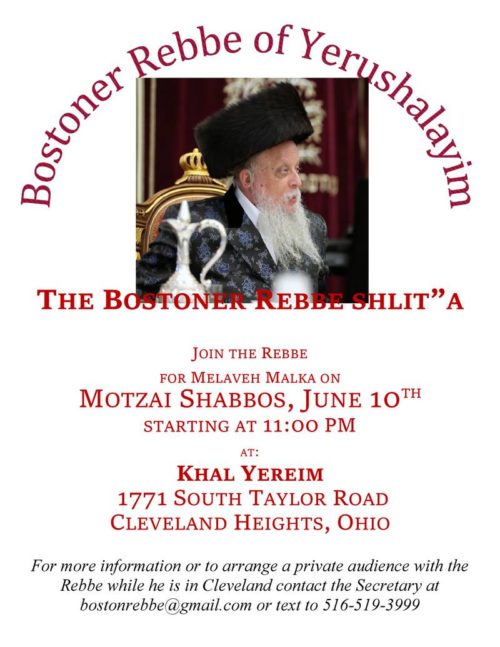 Melava Malka with the Bostoner Rebbe, Shlit’a this Motzei Shabbos at Khal Yereim June 7, 2017 Leave a Comment