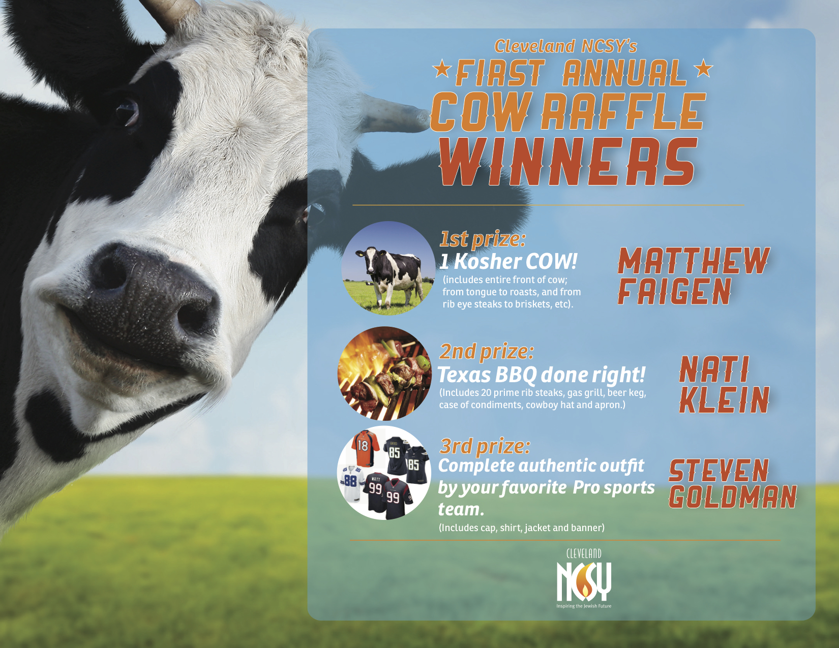 CONGRATULATIONS to Matthew Faigen and Elyssa Brent Faigen, Nati Klein and Chany Klein and Steve and Jodie Goldman on being our first annual Cow Raffle Winners!