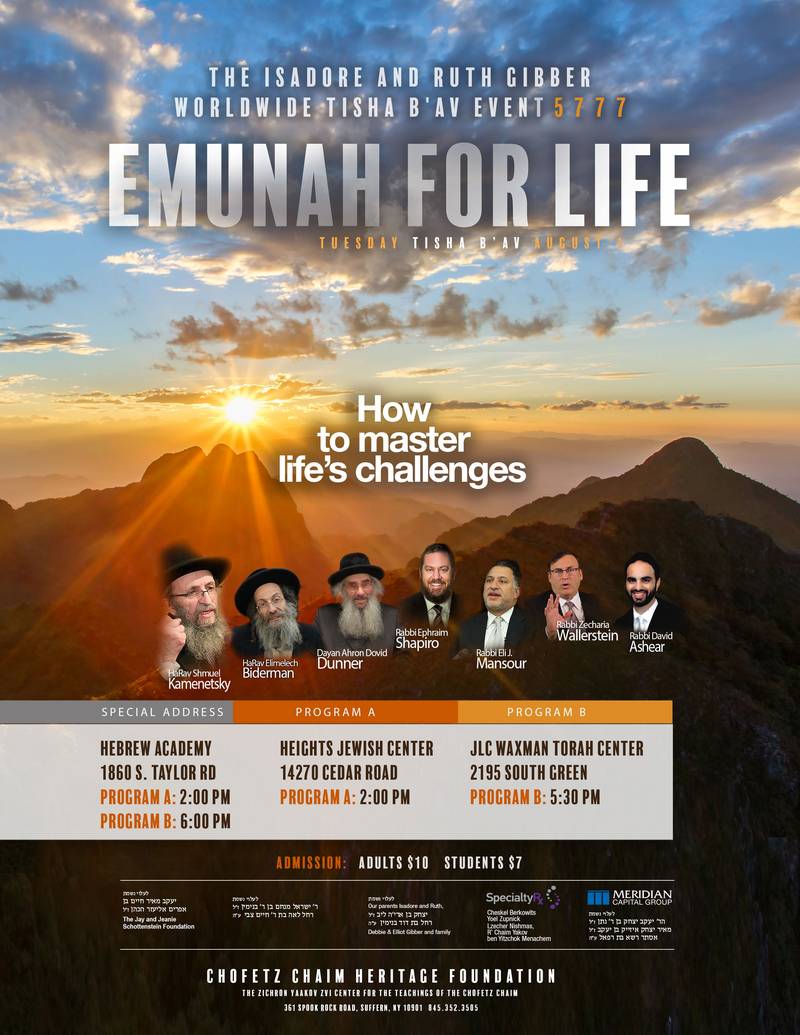 Special Tisha B’Av Event – “How to Master Life’s Challenges” – a Chofetz Chaim Heritage Foundation Program July 19, 2017 Leave a Comment