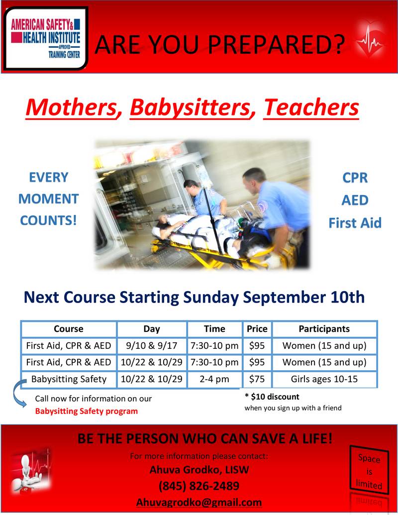 Learn CPR, First Aid, AED – Next Course Starts This Sunday!