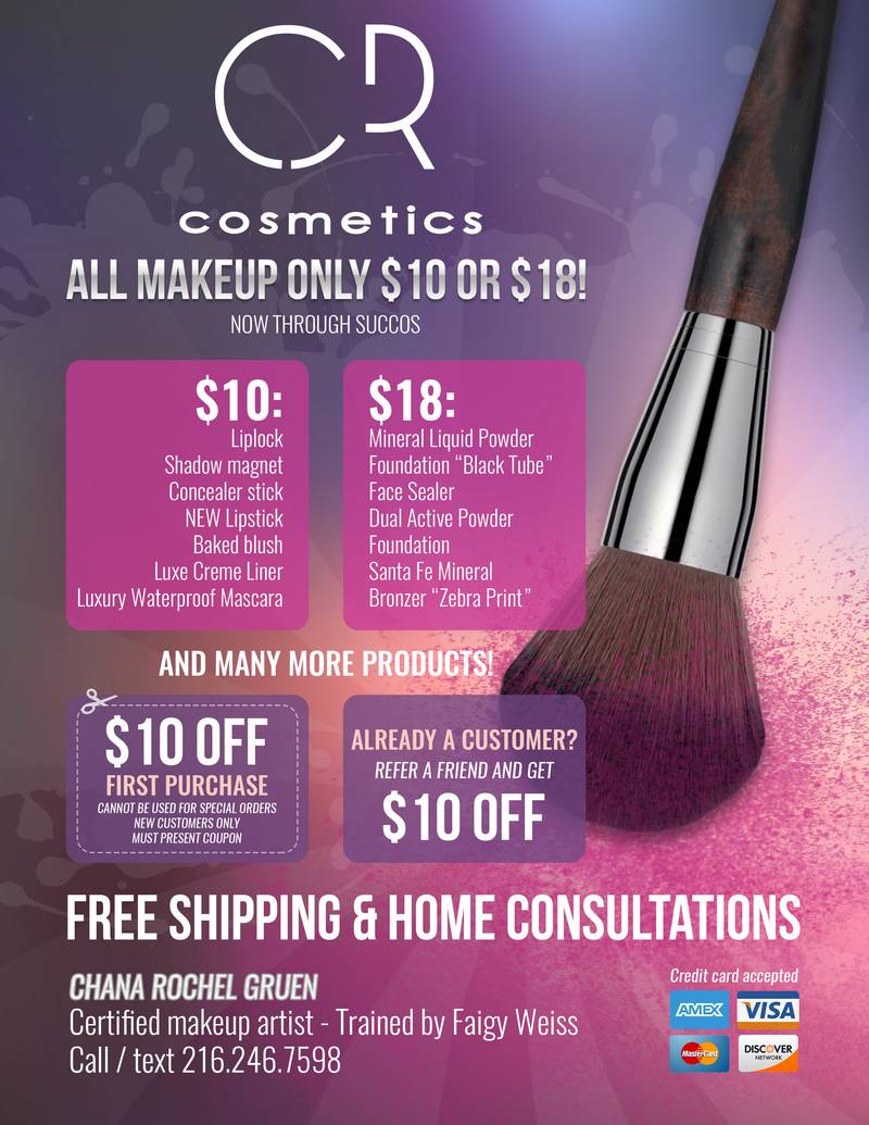 CR Cosmetics – All Makeup Only $10 or $18 Through Sukkos!