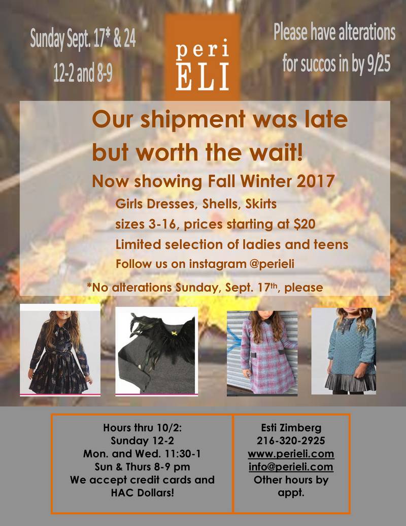 Peri Eli Now Showing Fall/Winter 2017! Hours Through 10/2