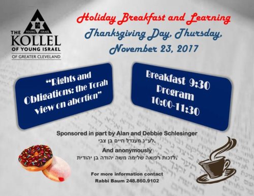 Young Israel Kollel Holiday Breakfast and Learning, Thursday November 19, 2017 Leave a Comment Rights and Obligations: The Torah View on Abortion