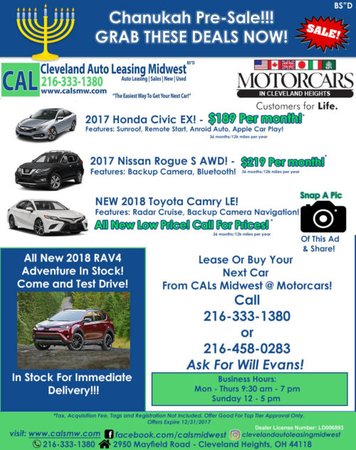 Chanukah Pre-Sale at Cleveland Auto Leasing Midwest!
