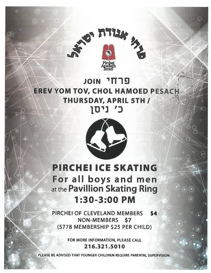 Pirchei Ice Skating Erev Yom Tov, Thursday, April 5th!