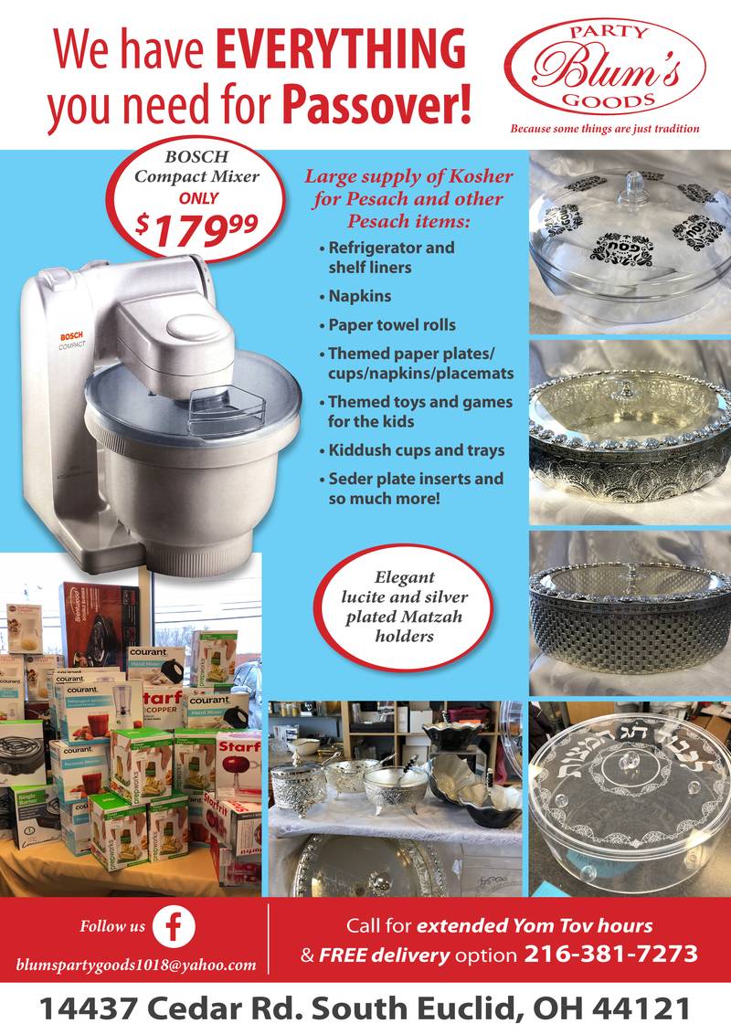 - Thursday, 3/29, 11 am – 3:30 pm in Menorah Park synagogue