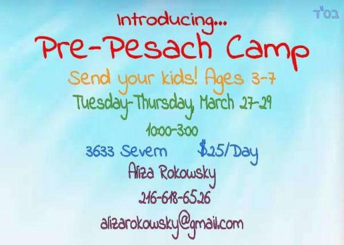 Pre-Pesach Camp in Cleveland Heights, Tuesday Through Thursday!