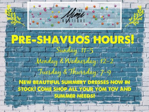 Pre-Shavuos Hours at Mimi Boutique 2!
