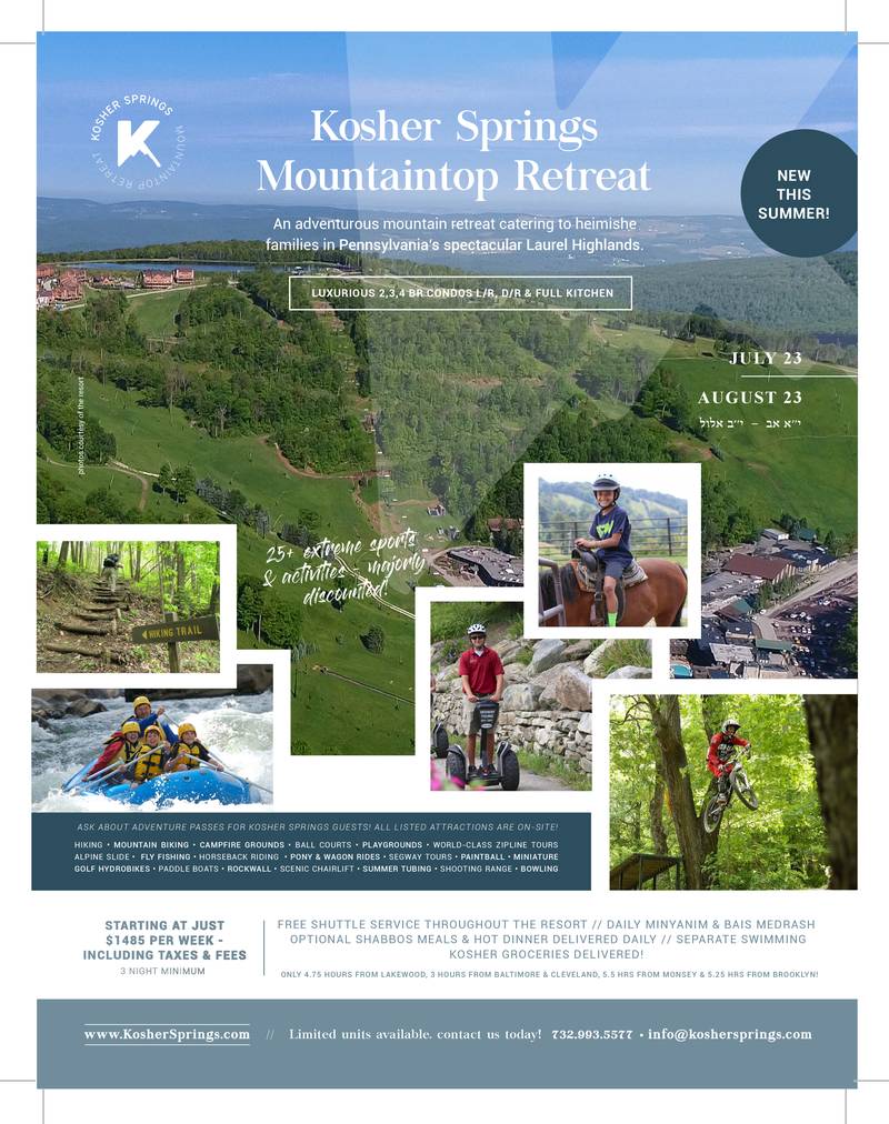 Join CLE Zemer, Freshko Foods (Paci Elbaum) and R’ Yosef Koval on August 17th for a relaxing Shabbos Getaway. Enjoy delicious meals, uplifting davening and zemiros and relax in a beautiful resort.