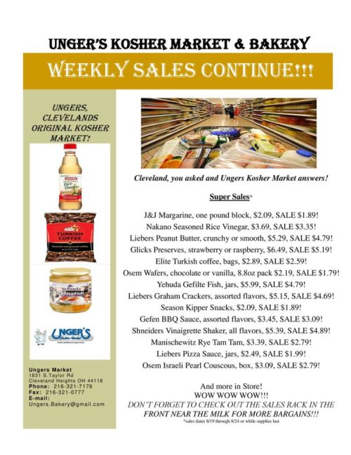 All orders must be placed on or before September 2! To place your order call Rut Aviv at 216-246-5437, or email rut2aviv@gmail.com.
