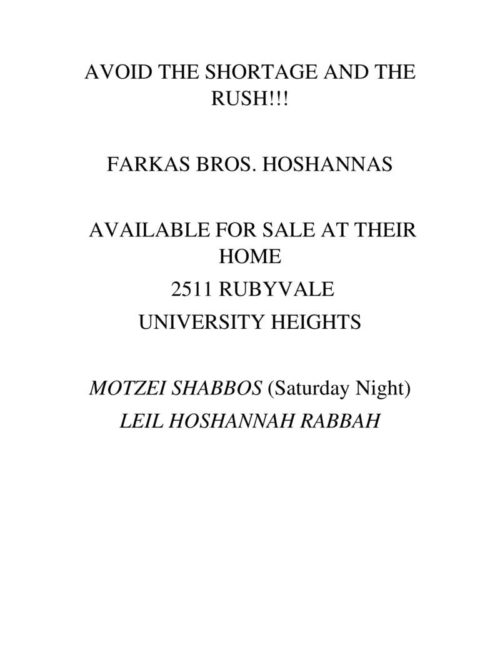 Avoid the Shortage and the Rush! Get Your Hoshanos Now!