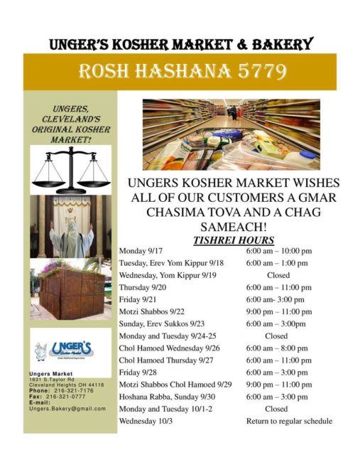 Unger’s Tishrei Hours! G’mar Chasima Tova!