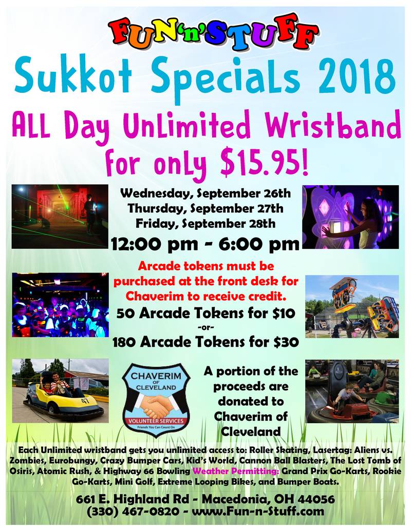 Chaverim Sukkos Specials at Fun ‘n Stuff!