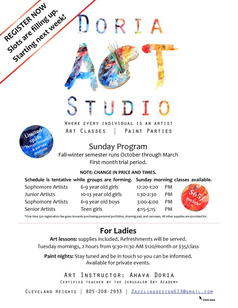 Art Lessons: Doria Art Studio Sunday Program. Register Now!