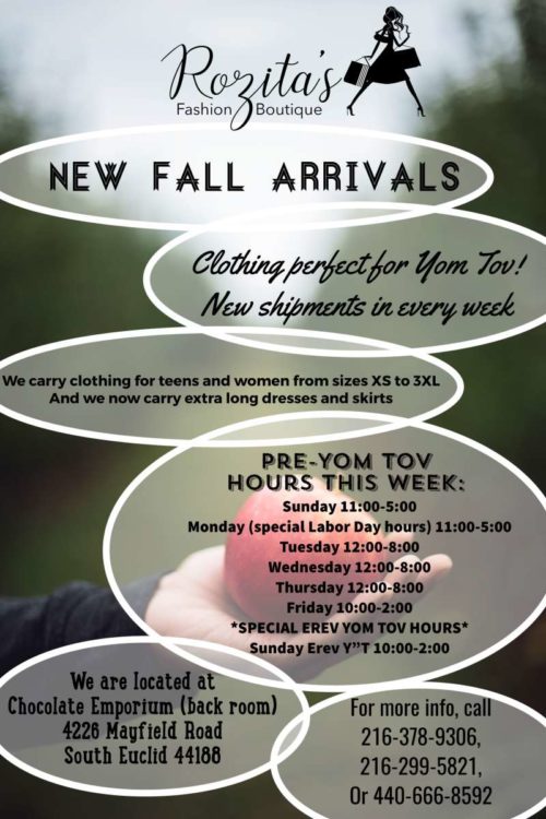 Rozita’s Fashion Boutique – New Fall Arrivals! Clothing Perfect for Yom Tov!
