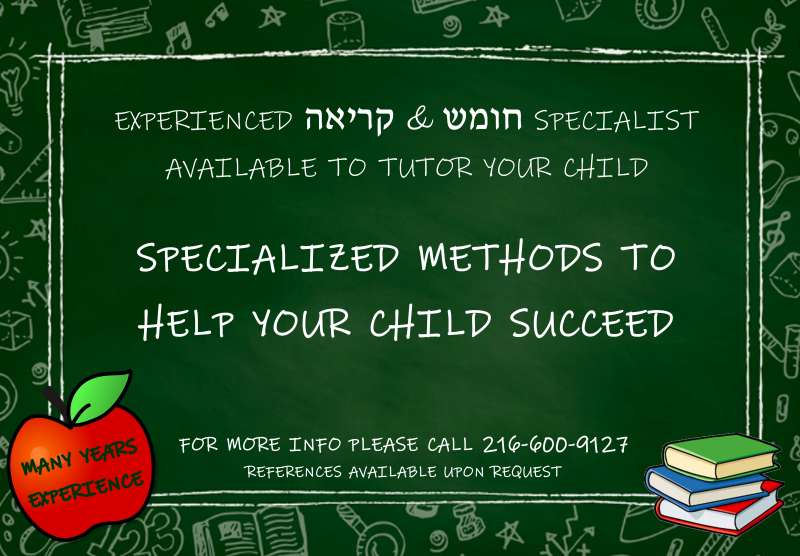 Experienced Kriah and Chumash Specialist Will Help Your Child Succeed!