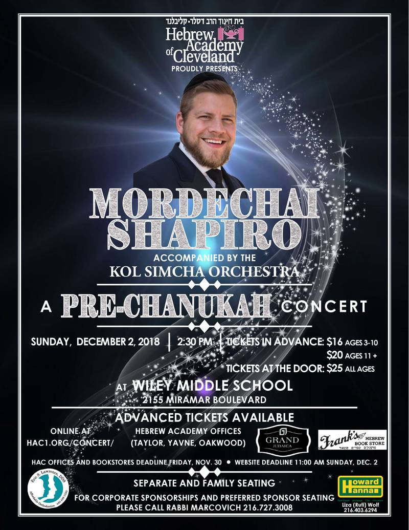 Hebrew Academy Pre-Chanukah Concert Featuring Mordechai Shapiro! Sunday, December 2nd