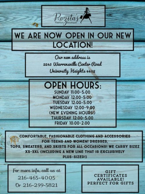 Rozita’s Fashion Boutique is Now Open in Our New Location!