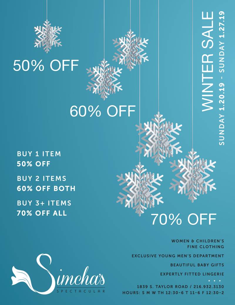 Simcha’s Spectacular Amazing Winter Sale Up to 70% Off! Seven Days Only! January 26, 2019 Leave a Comment